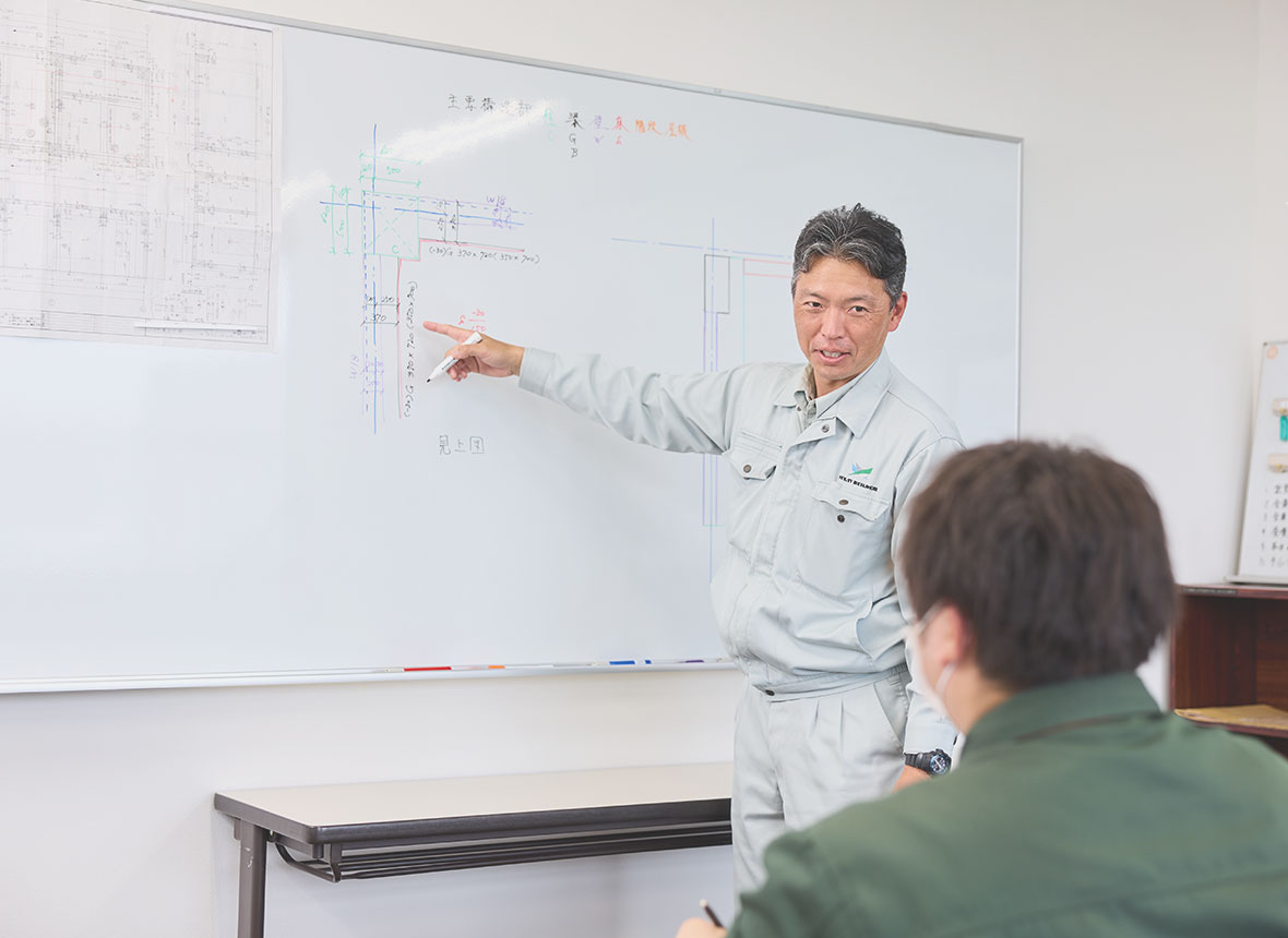 社員教育と共に技術・技能の人材育成教育を行い社員のレベルアップを考えています。